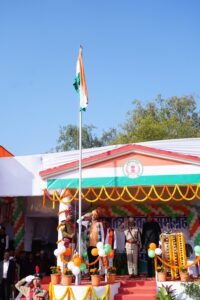 महासमुन्द 26 जनवरी 2024- 75 वां गणतंत्र दिवस समारोह के 74 वीं वर्षगांठ के अवसर पर स्कूल शिक्षा, उच्च शिक्षा, धार्मिक न्यास तथा धर्मस्व पर्यटन एवं संस्कृति मंत्री बृजमोहन अग्रवाल ने जिला मुख्यालय में आयोजित मुख्य गणतंत्र दिवस समारोह में ध्वजारोहण कर राष्ट्रगान, राष्ट्रध्वज को सलामी दी। शिक्षा मंत्री बृजमोहन अग्रवाल ने परेड निरीक्षण कर परेड की सलामी ली। उसके पश्चात मुख्यमंत्री का जनता के नाम संदेश का वाचन किया। समारोह महासमुन्द के मिनी स्टेडियम में आयोजित किया गया था। मंत्री अग्रवाल ने हर्ष के प्रतीक तीन रंग के गुब्बारें आकाश में छोड़े। इस अवसर पर महासमुंद विधायक योगेश्वर राजू सिन्हा, जिला पंचायत अध्यक्ष श्रीमती उषा पटेल, नगर पालिका अध्यक्ष श्रीमती राशि महिलांग, पूर्व राज्य मंत्री पूनम चंद्राकर, पूर्व विधायक विमल चोपड़ा व श्रीमती रूप कुमारी चौधरी, पूर्व सदस्य युवा आयोग प्रशांत श्रीवास्तव, जनपद अध्यक्ष यतेंद्र साहू, चंद्रहास चंद्राकार, संदीप दीवान, कलेक्टर प्रभात मलिक, पुलिस अधीक्षक राजेश कुकरेजा, वन मंडलशिकारी पंकज राजपूत, जिला पंचायत सीईओ एस. आलोक एवं अधिकारी-कर्मचारी, जनप्रतिनिधि तथा गणमान्य नागरिक उपस्थित थे।