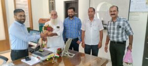 कांकेर – छत्तीसगढ़ चेंबर ऑफ कॉमर्स एंड इंडस्ट्रीज के कांकेर जिला इकाई के प्रतिनिधि मंडल के सदस्यों ने कांकेर जिले के नए जिलाधीश निलेश कुमार महादेव क्षीरसागर से सौजन्य भेंटकर उन्हें पुष्पगुच्छ भेंटकर उनका स्वागत किया,,,,,,जिलाधीश महोदय ने स्वयं होकर व्यापारियों के प्रतिनिधि मंडल से व्यापारियों से उनकी समस्याओं के संबंध में पूछा जिस पर प्रतिनिधि मंडल के सदस्यों ने बताया कि पखांजुर के व्यापारियों की शिकायत हैं, की बाहर से लगभग 2000 फेरी वाले आ कर बिना बिल का मॉल मंगाकर जीएसटी की चोरी करते है ,जिसकी वजह से स्थानिय व्यापारियों को नुकसान उठाना पड़ रहा है,,,,,,, पखांजुर के साथ साथ भानुप्रतापुर व कांकेर जिला मुख्यालय में भी यह समस्या व्याप्त हैं,,,,,इस संबंध पखांजूर SDM से और मोनिका साहा अध्यक्ष नगर पंचायत से बात की गई थी पर इस मुद्दे पर उन्होंने अब तक कोई कार्यवाही नहीं की है, इसके अलावा नगर के नव निर्मित मुख्यमार्ग के डिवाईडर पर लगी स्ट्रीट लाईट को जलाने के अलावा पुराने बस स्टैंड में नाली खुला हुआ हैं जिससे कई दुर्घटनाएं वहां होती रहती हैं जिसे ढकने की मांग के साथ साथ और भी बहुत सी समस्याओं से कलेक्टर महोदय को अवगत कराया गया जिसे शीघ्र ही दूर करनें का आश्वासन नव नियुक्त जिलाधीश निलेश क्षीरसागर जी ने व्यापारियों के प्रतिनिधि मंडल को दिया हैं,,,,,प्रतिनिधि मंडल में प्रमुख रूप से छत्तीसगढ़ चेंबर ऑफ कॉमर्स के कांकेर जिला इकाई के अध्यक्ष दीपक कुमार शर्मा,छत्तीसगढ़ चेंबर ऑफ कॉमर्स के सलाहकार हाजी वल्ली मोहम्मद भाई, छत्तीसगढ़ चेंबर ऑफ कॉमर्स के प्रदेश मंत्री अनूप शर्मा,कांकेर चेंबर के महामंत्री गफ्फार मेमन के अलावा कैट के शैलेंद्र सिंह प्रमुख रूप से शामिल थे।